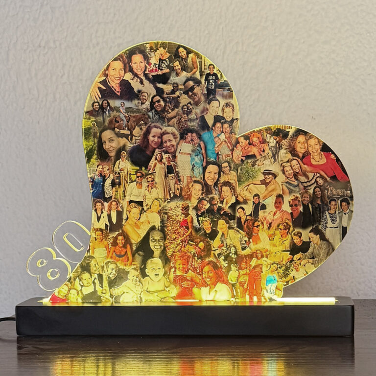 Each art piece is handcrafted from clear premium acrylic and filled with your personal photos, carefully composed