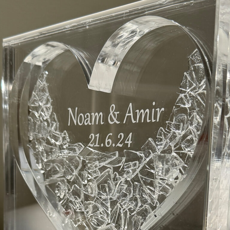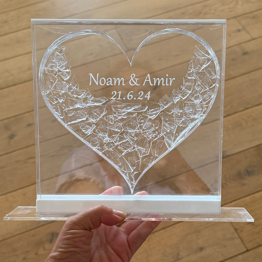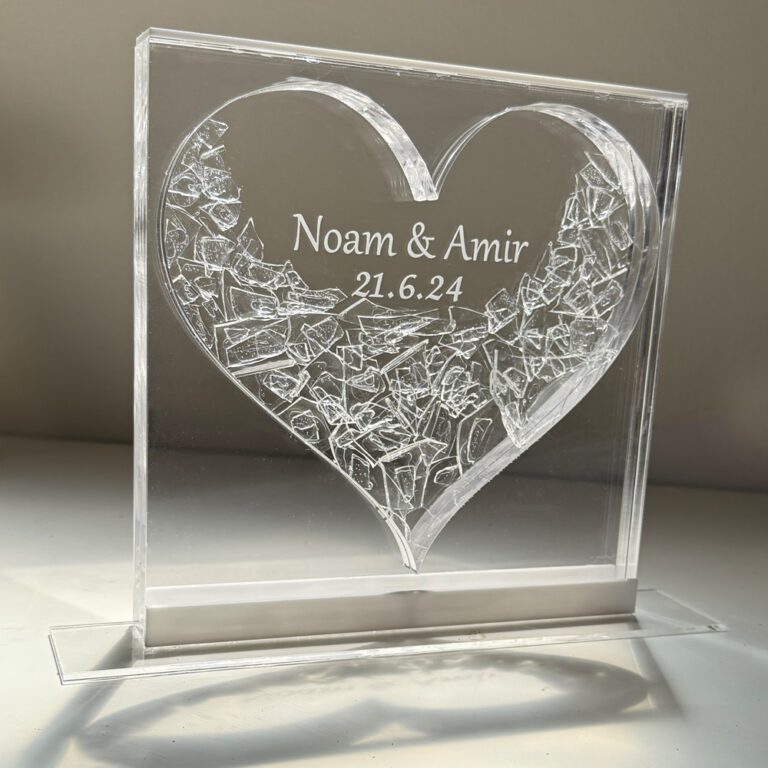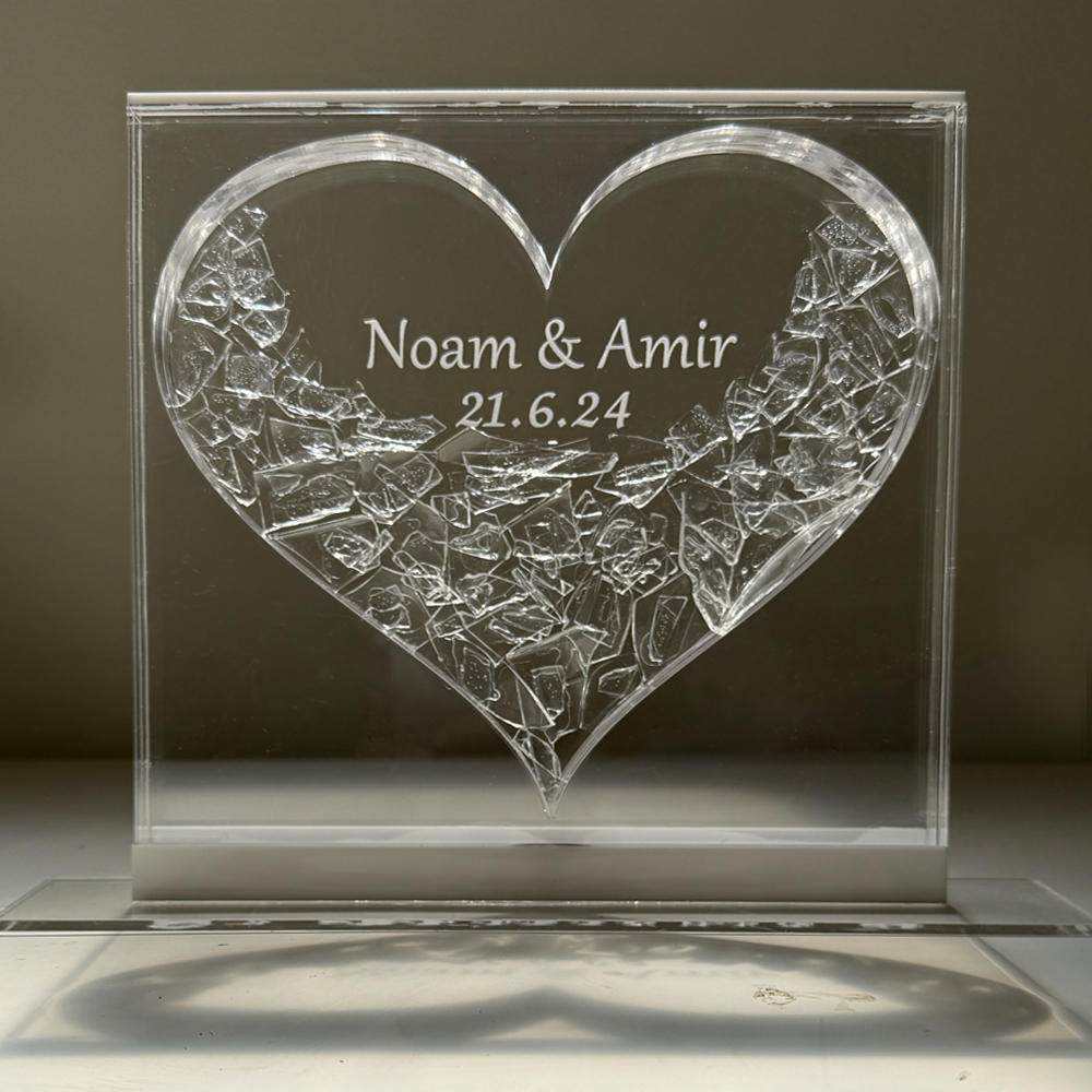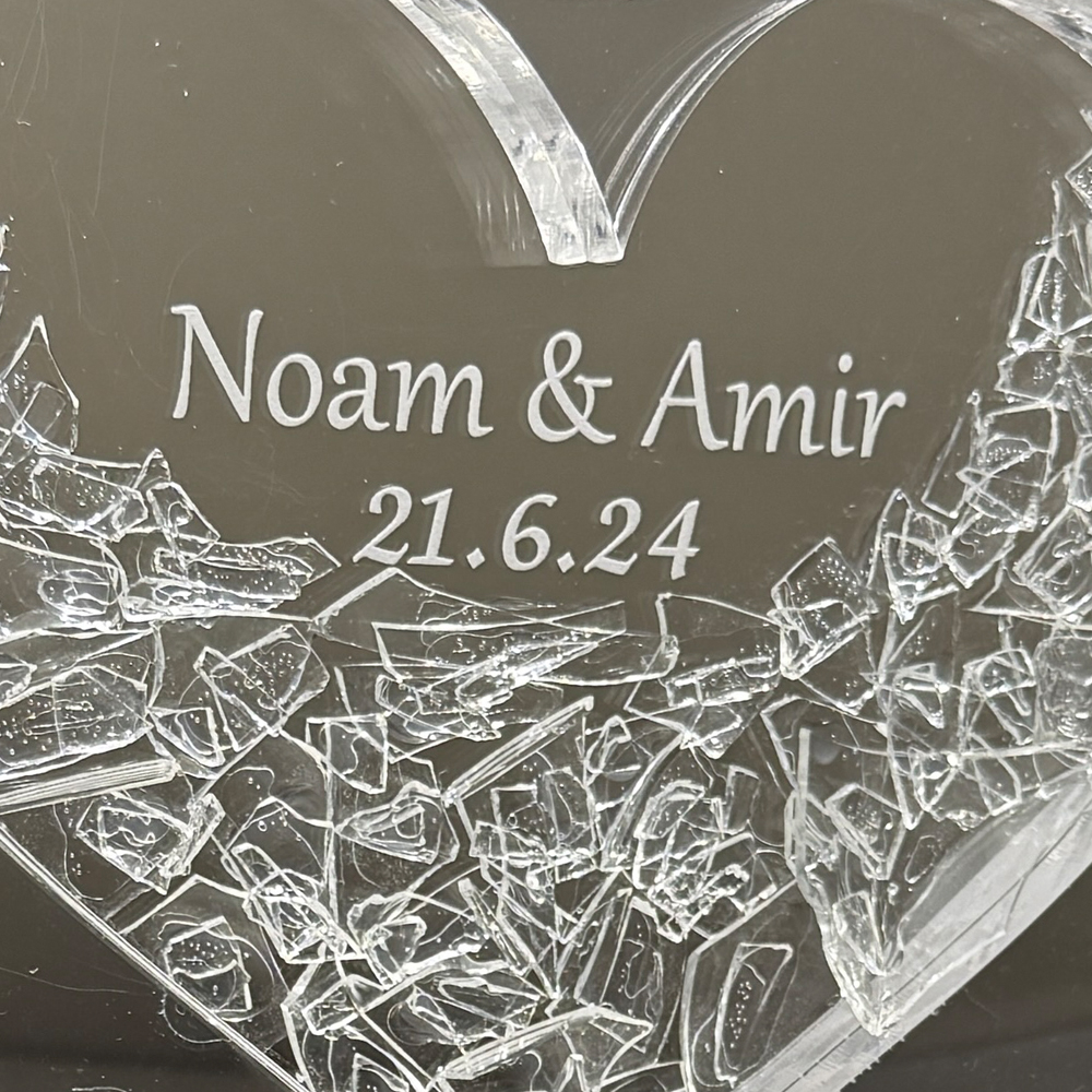 "לב חתונה" מבית Yael Man Art הוא יותר ממזכרת – זו יצירה אישית, מרגשת, שמנציחה את רגע שבירת הכוס בטקס החופה.