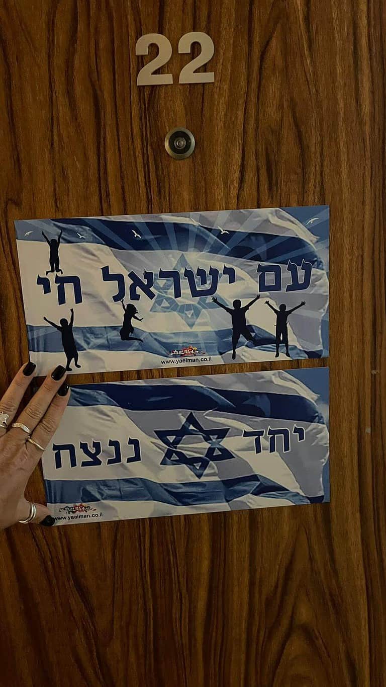 מגנט לאוטו – עם ישראל חי על רקע דגל ישראל. גודל: A4